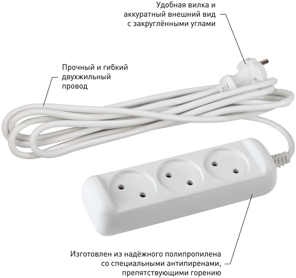 | Тип изделия | удлинитель бытовой без заземляющих контактов, без защитных шторок |