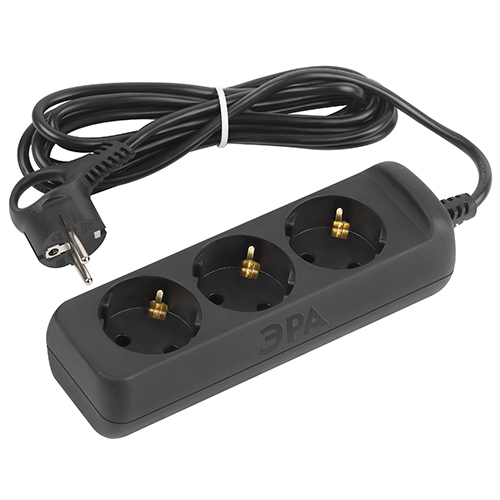 Удлинитель трехместный 5 м "Эра" UX-3e-5m-B (10 А, ПВС 3 x 0,75 кв.мм) с заземлением, черный