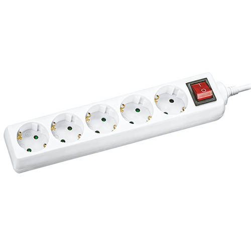 Удлинитель пятиместный Navigator NPE-S-05-300-ESC-3x0.75 с/з с выкл. 5 гн. 3м (10 А, ПВС 3 х 0,75 кв.мм) с выключателем, белый