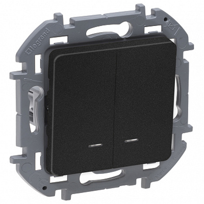 Выключатель двухклавишный Legrand 673633 Inspiria (10 АX, IP20) скрытой установки, с подсветкой / индикацией, антрацит