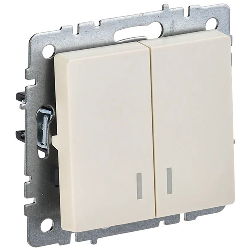 Выключатель двухклавишный IEK ВС10-2-1-БрКр Brite (10 А, IP20) скрытой установки, с подсветкой, бежевый