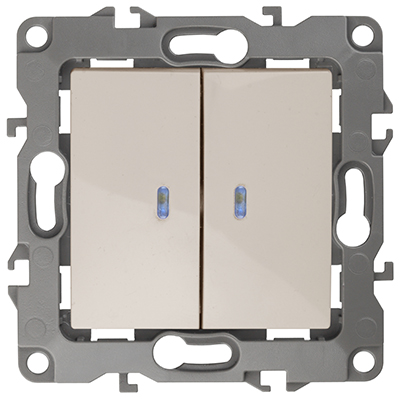 Выключатель двухклавишный 12-1105-02 "Эра 12" (10 АХ, 250 В, IP20), с подсветкой, слоновая кость