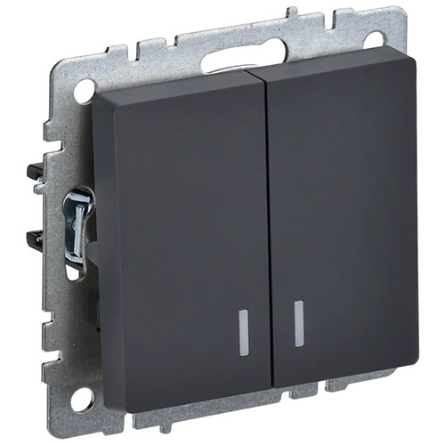 Выключатель двухклавишный IEK ВС10-2-1-БрГ Brite (10 А, IP20) скрытой установки, с подсветкой, графит