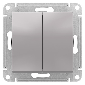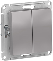 Выключатель двухклавишный Schneider Electric ATN000351 AtlasDesign (10 АХ) скрытой установки, алюминий