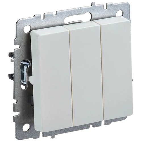 Выключатель трехклавишный IEK ВС10-3-0-БрЖ Brite (10 А, IP20) скрытой установки, жемчуг