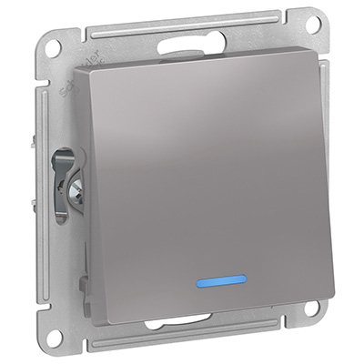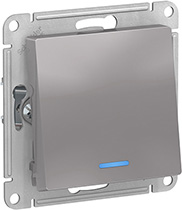 Переключатель одноклавишный Schneider Electric ATN000363 AtlasDesign (10 АХ) скрытой установки, с подсветкой, алюминий