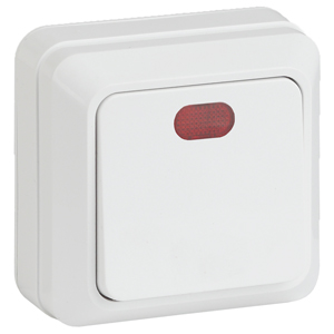 Выключатель одноклавишный Intro 2-102-01 Quadro (10 А, IP20) открытой установки, с подсветкой, белый