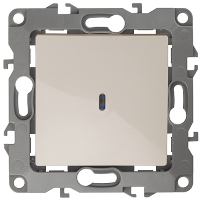 Выключатель одноклавишный 12-1102-02 "Эра 12" (10 АХ, 250 В, IP20), с подсветкой, слоновая кость