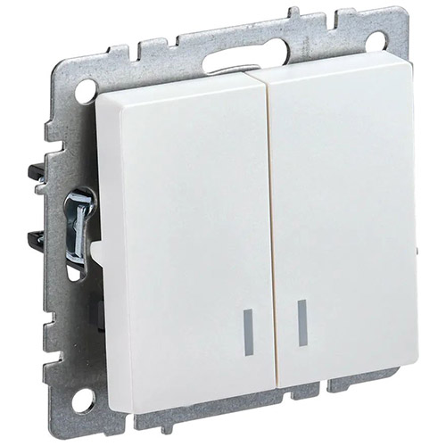 Выключатель двухклавишный IEK ВС10-2-1-БрЖ Brite (10 А, IP20) скрытой установки, с подсветкой, жемчуг