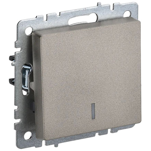 Выключатель одноклавишный IEK ВС10-1-1-БрШ Brite (10 А, IP20) скрытой установки, с подсветкой, шампань