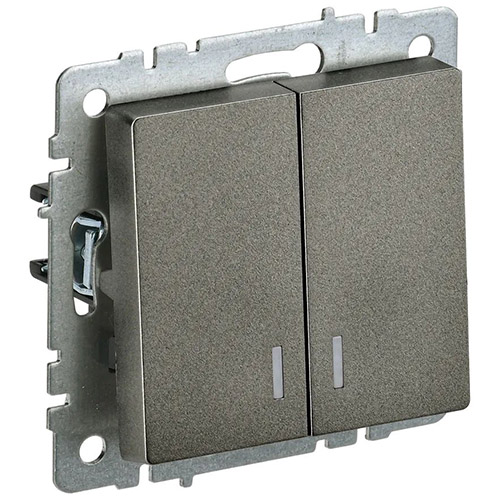 Выключатель двухклавишный IEK ВС10-2-1-БрТБ Brite (10 А, IP20) скрытой установки, с подсветкой, темная бронза