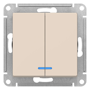 Выключатель двухклавишный Schneider Electric ATN000253 AtlasDesign (10 АХ) скрытой установки, с подсветкой, бежевый