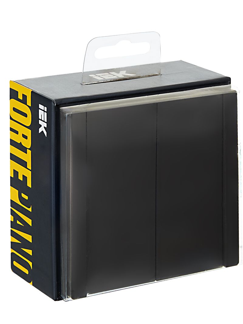 Выключатель двухклавишный проходной IEK FP108 Forte&Piano (10 А, IP20) скрытой установки, с индикацией, черный