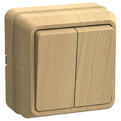 Выключатель двухклавишный IEK ВС20-2-0-ОС "Октава" (10 А) открытой установки, сосна