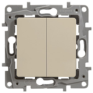 Выключатель двухклавишный Legrand Etika 672302 (винтовые клеммы, 2 х 2 зажима) на захватах, слоновая кость