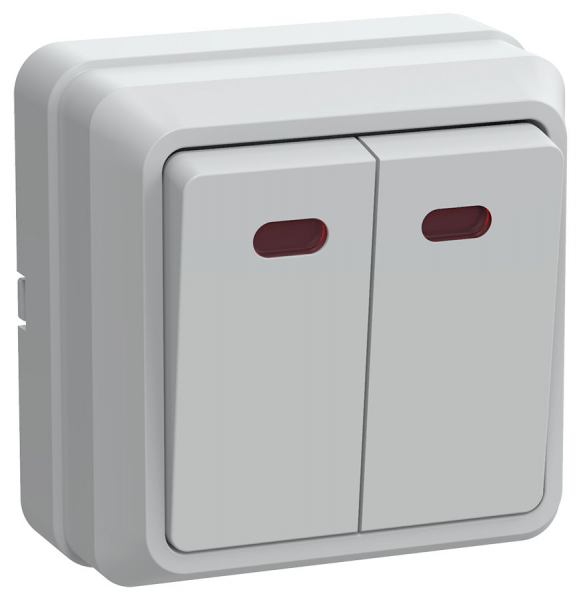 Выключатель двухклавишный ВС20-2-1-ОБ "Октава" IEK (10 А, IP20) открытой установки, с подсветкой, белый