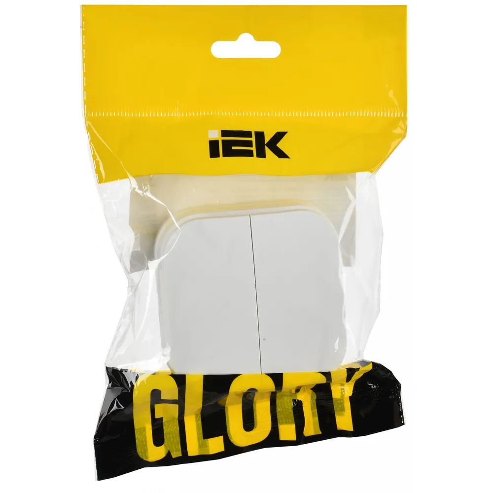 Выключатель двухклавишный IEK ВС20-2-0-ХБм Glory (10 А, IP20) открытой установки, белый матовый