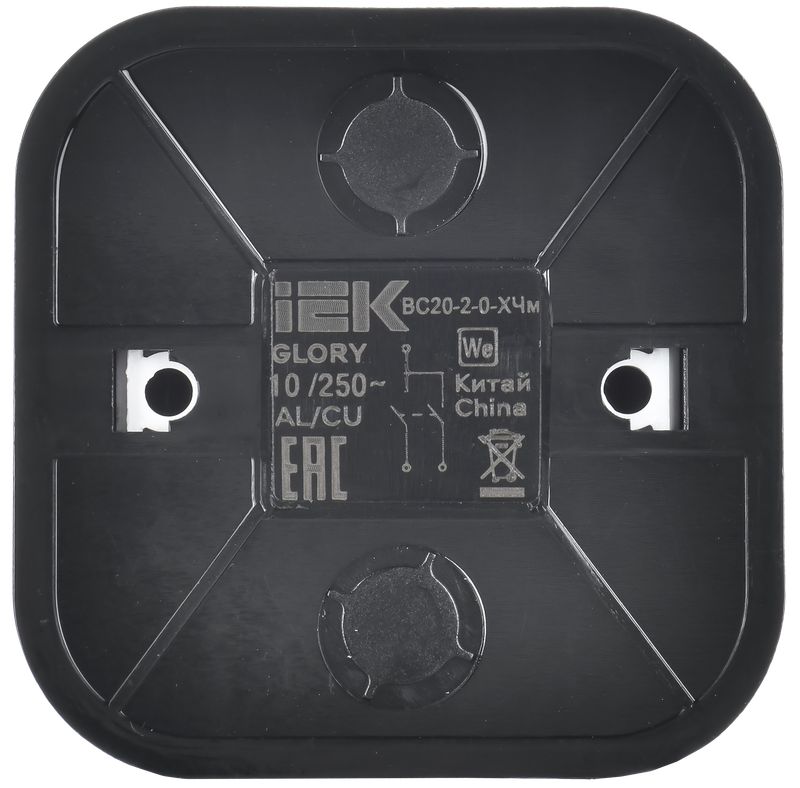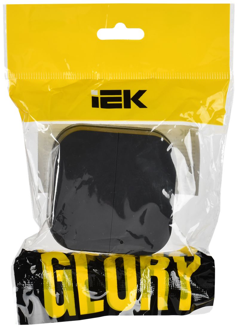 Выключатель двухклавишный IEK ВС20-2-0-ХЧм Glory (10 А, IP20) открытой установки, черный матовый