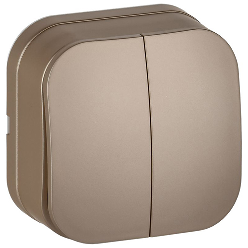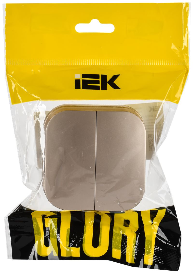 Выключатель двухклавишный IEK ВС20-2-0-ХШм Glory (10 А, IP20) открытой установки, шампань матовый