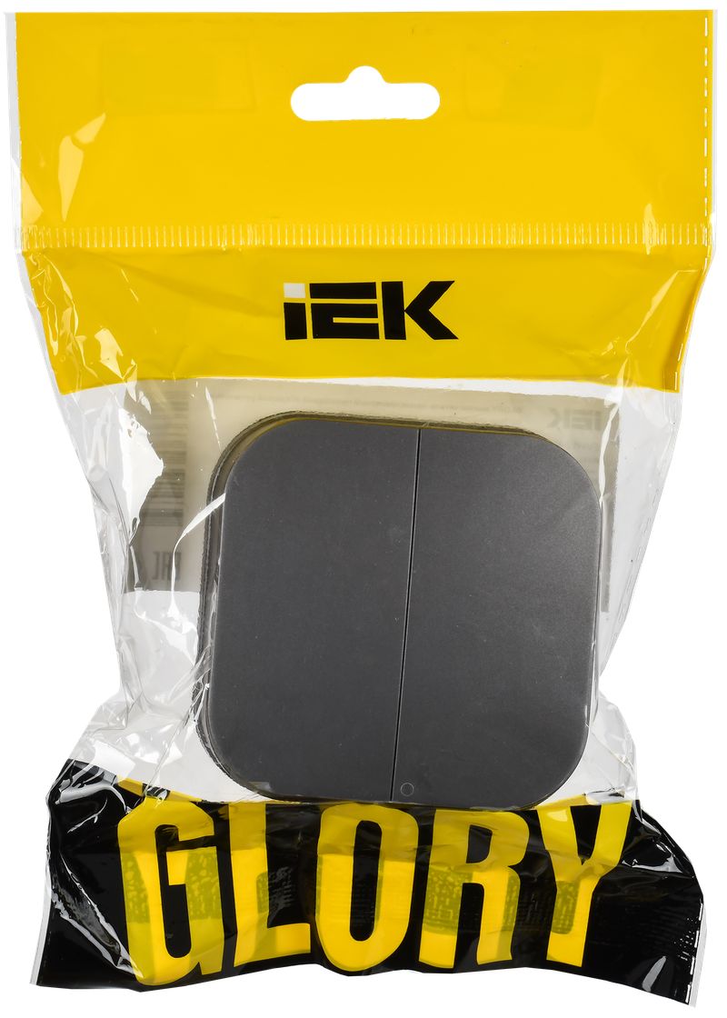 Выключатель двухклавишный IEK ВС20-2-0-ХСм Glory (10 А, IP20) открытой установки, сталь матовый