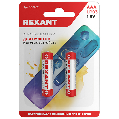Батарейка алкалиновая LR03 Rexant 30-1052 (1,5 В), 2 шт., блистер
