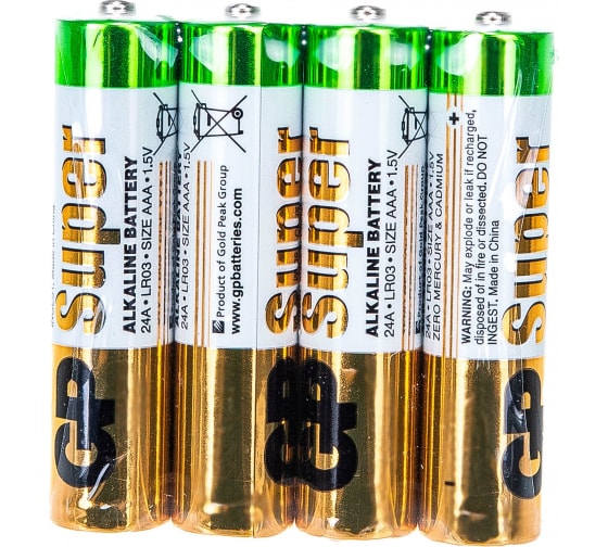 Батарейка алкалиновая GP ААА набор 4 шт. мизинч. GP24ARS-2SB4