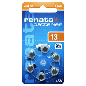 Батарейка дисковая ZA13 BL6 Renata для слуховых аппаратов, 6 шт.