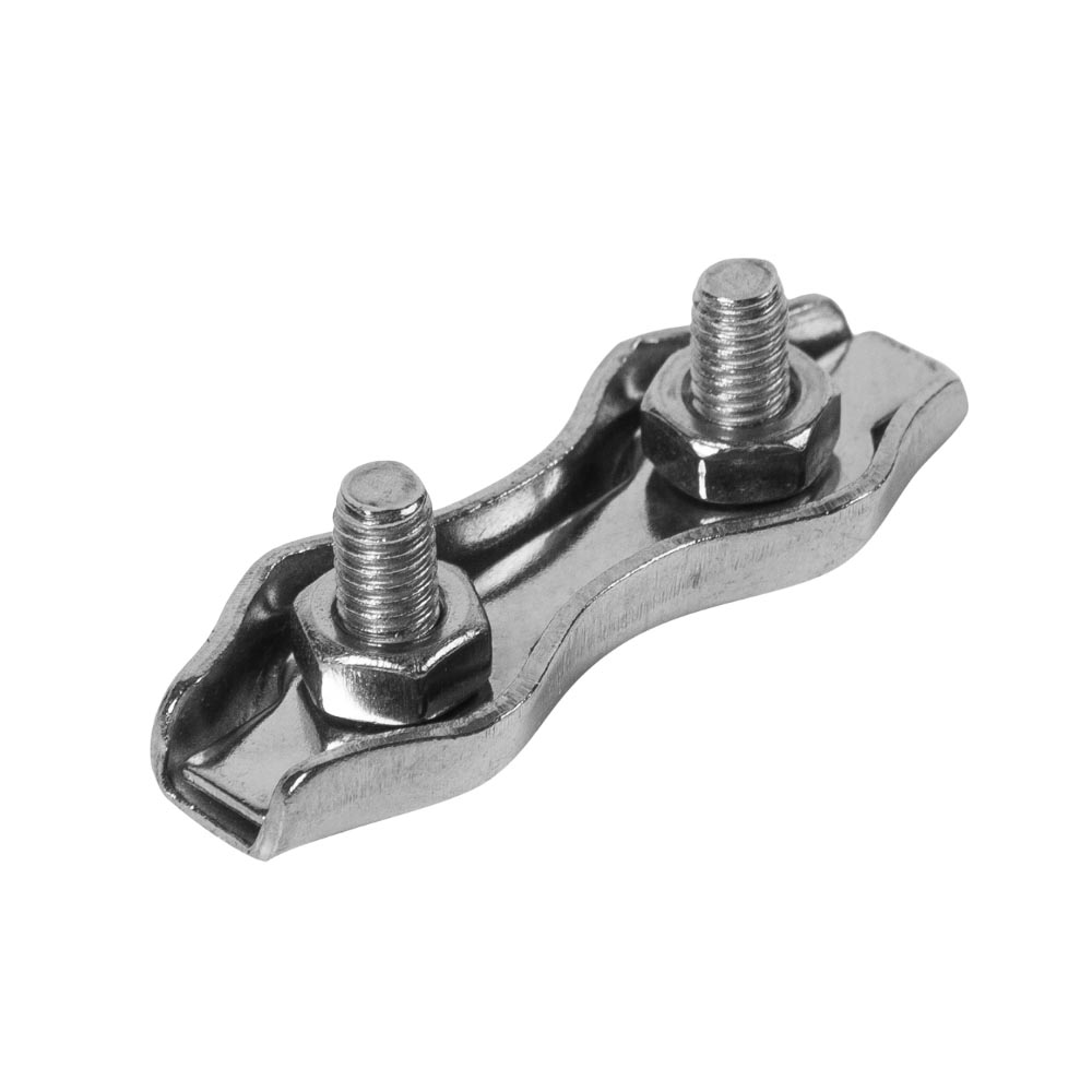 Особенности: при установке зажима стальной трос или канат размещается на пластине-основании по обоим краям, затем прижимается второй пластиной и затягивается гайками. Двойной зажим D-SWR (Duplex) отличается от одинарного зажима C-SWR (Simplex) более высокой