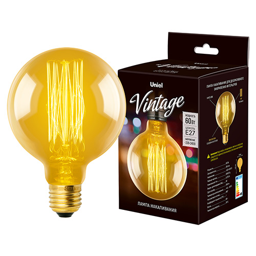 Лампа накаливания Uniel Vintage IL-V-G95-60-GOLDEN-E27 VW01 (60 Вт, Е27), шар