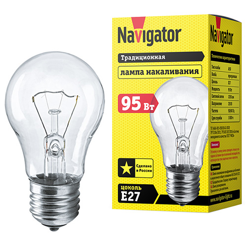 Лампа накаливания Navigator NI-A-95-230-E27-CL (А50 стандарт, 95 Вт, 1250 лм, колба прозрачная)