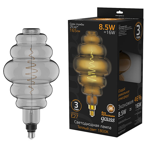 Лампа светодиодная Gauss Filament Honeycomb 8,5W 165lm 1800К Е27 Gray LED (8,5 Вт, 165 лм, серая колба)