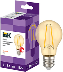 Лампа светодиодная А60 11 Вт IEK (Е27, 230 В, 1320 лм, колба золотистая, 360°), цвет свечения теплый белый