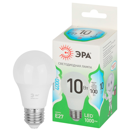 Лампа светодиодная Green Line LED A60-10W-840-E27 GL "Эра" (А60 груша, 10 Вт, 1000 лм, 4000 К)