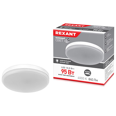 Лампа светодиодная Rexant 604-064 (tablet, 220 В, GX53, 10,5 Вт, 840 лм), цвет свечения нейтральный белый