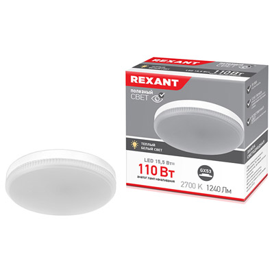Лампа светодиодная Rexant 604-067 (tablet, 220 В, GX53, 15,5 Вт, 1240 лм), цвет свечения теплый белый
