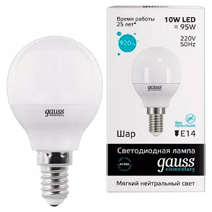 Лампа светодиодная Gauss Elementary 53120 (10 Вт, E14, G45 шар, 920 лм, 4100 К)