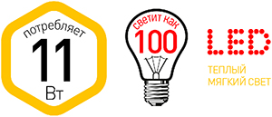 | Мощность эквивалента, Вт | 100 (лампа накаливания) |