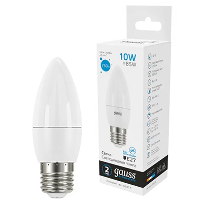 Лампа светодиодная Gauss 30230 (свеча, Е27, 10 Вт, 750 лм, 6500 К)
