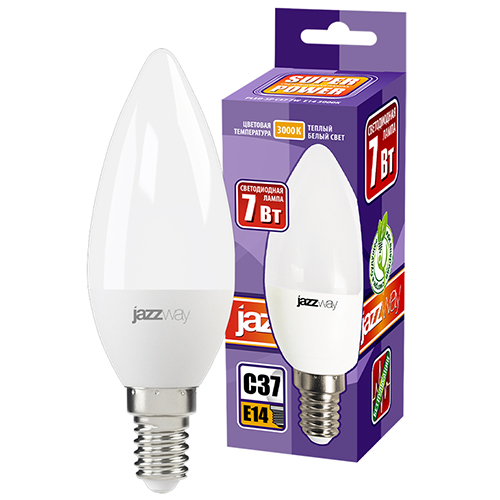 Лампа светодиодная Jazzway PLED-SP C37 7w E14 3000K (свеча, 560 лм)