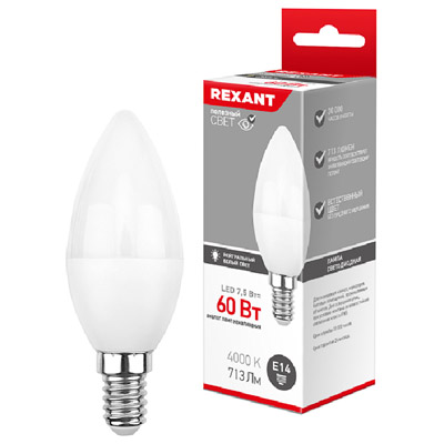 Лампа светодиодная Rexant 604-018 (С35 свеча, 220 В, E14, 7,5 Вт, 713 лм), цвет свечения нейтральный белый