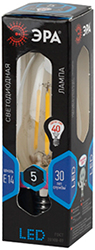 Лампа светодиодная "Эра" F-LED B35-5w-840-E14 (5 Вт, E14, свеча, 400 лм) прозрачная, цвет свечения нейтральный белый