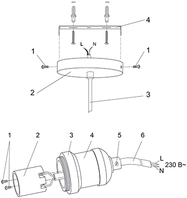 - Патрон подвешивается на электрическом шнуре при помощи резьбовой втулки.