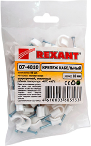 Крепеж кабеля круглый 10 мм Rexant 07-4010, белый, 50 шт.