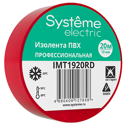 Изолента ПВХ 19 мм х 20 м Systeme Electric IMT1920RD, красный