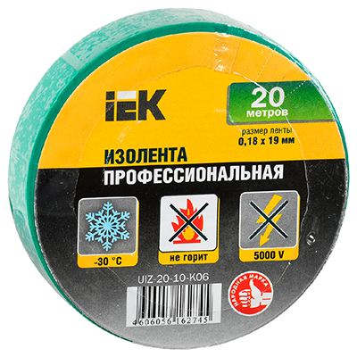 Изолента 19 мм х 20 м ПВХ IEK, зеленый