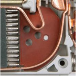 Главные контакты АВДТ34 сконструированы так, что нейтральный контакт замыкается раньше и отключается позже, что позволяет избежать перекоса фаз напряжения нагрузки, аналогично "обрыву нуля" в сети. Напайка из серебросодержащего композита повышает износостойкость контактной группы и снижает переходное сопротивление. |