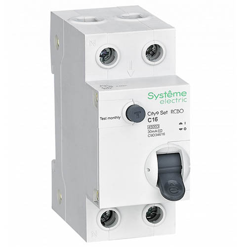 Автоматический выключатель дифференциального тока Systeme Electric C9D34616 City9 Set (1Р+N, 16 А, характеристика срабатывания C, тип AC, 30 мА, 4,5 кА)