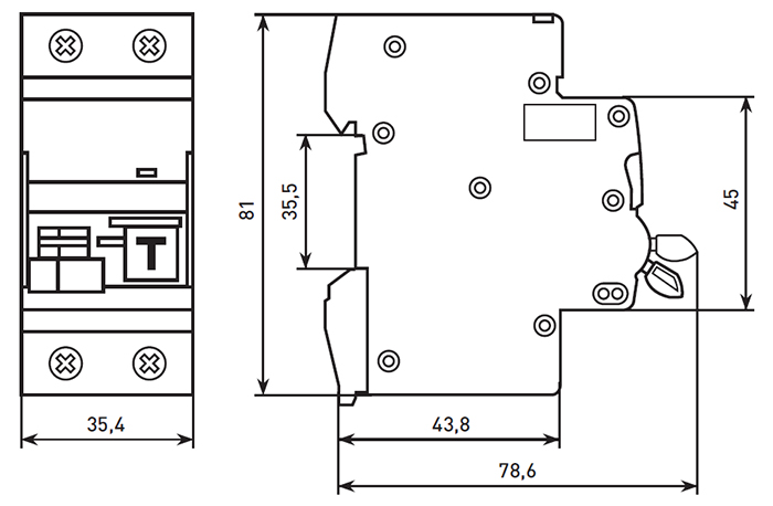 Особая конструкция рычага обеспечивает информативность устройства, указывая на причину срабатывания (опущена только часть рычага - короткое замыкание или перегрузка, опущены обе части рычага - ток утечки).