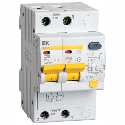 Автоматический выключатель дифференциального тока IEK АД12 2Р С20 30мА IEK (20 А, характеристика расцепления С, 4,5 кА)