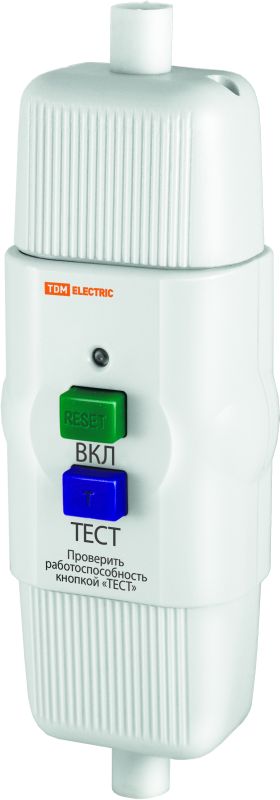 Над кнопкой «Тест» находится кнопка «Вкл» зеленого цвета, ее нужно нажимать когда УЗО подключено к сети, каждый раз, когда оно сработало или после нажатия кнопки «Тест» для повторного подключения нагрузки.